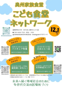 奥州こども食堂12月開催分のご案内 奥州市内のこども食堂12月開催分のご案内です。 どなたでもご利用できますので、ぜひお出かけください! こども食堂 2025/12/05 sakuranoki ≪ 🌸12月の園見学会のお知らせ🌸 | 12/20(土) 日高こども食堂にじのご案内 ≫ /blog /blog/blog/blog_comments/captcha/37070097 /blog/blog/blog_comments/get_token