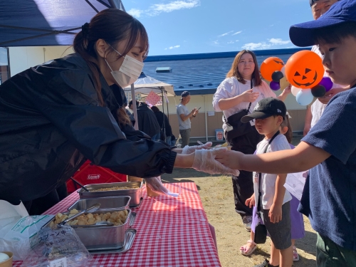 会場は日高ななつ星と日高神社。地域のお店やキッチンカー、日高ななつ星・日高さくらの木の職員、そして児童クラブの子どもたちと職員によるブースなど、全部で31店舗が並びました。